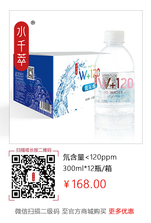水千萃低氘水 W120低氘水 去氘水 氘含量 < 120ppm 300毫升*12瓶/箱